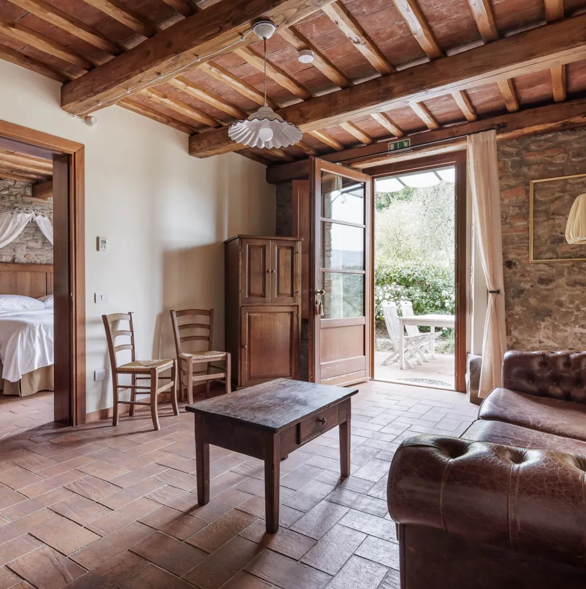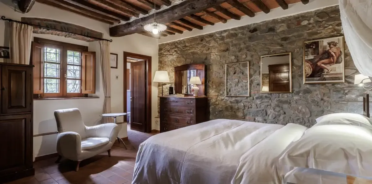 Tutte le nostre camere e suites si trovano all’interno di un antico casale ristrutturato avendo cura di mantenere le caratteristiche originali. Materiali di pregio della tradizione toscana danno uno stile rustico ed elegante agli ambienti.
