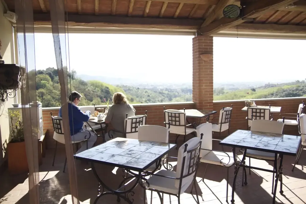 Sulla terrazza panoramica al mattino si può fare la colazione e alla sera sedersi insieme e gustare un buon bicchiere di vino. Inoltre ogni martedì e giovedì abbiamo la cena sulla nostra terrazza menù fisso con specialità toscane