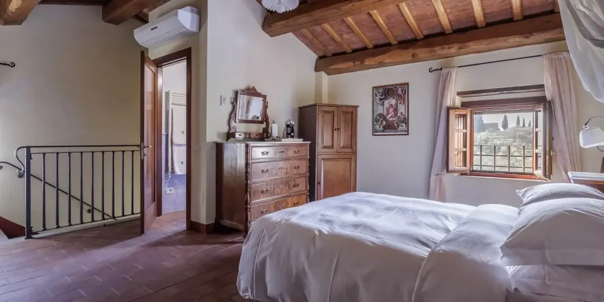 In mezzo a 4 ettari di uliveto giace la villa costruita nel XIII secolo. Dopo un minuzioso restauro nel rispetto dello stile toscano, oggi siamo in grado di offrire 3 suites e 3 camere doppie